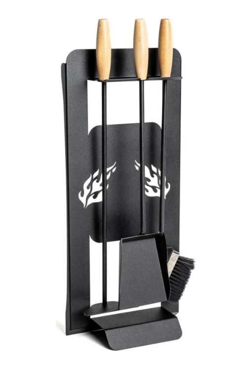 Каминный набор GRATAR КН-01 включает в себя предметы для ухода за каминами: кочерга, совок для сажи, метелка, декоративная подставка.