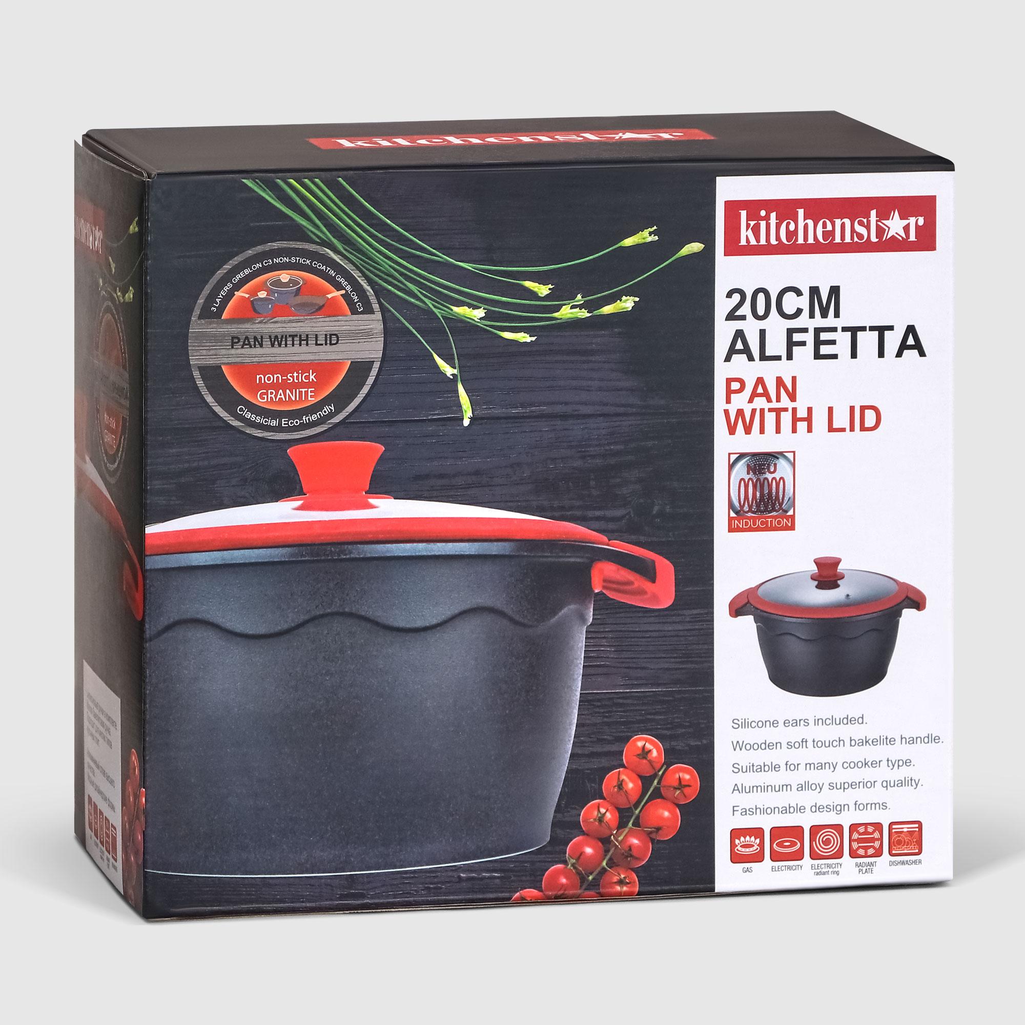 Кастрюля с крышкой бренда Kitchen star из коллекции Alfetta изготовлена в минималистичном стиле из литого алюминия с антипригарным покрытием высочайшего качества. Ярко-красные вставки разнообразят интерьер вашей кухни. Подходит для использования на газовых, электрических, индукционных, керамических плитах. Сьемные эргономичные бакелитовые ручки с минималистичным дизайном в ярком цвете не нагреваются и удобно лежат в руке. Каменное покрытие внутри и лаковое снаружи, устойчиво к царапинам и обладает исключительной долговечностью. Обладает антипригарными свойствами и легко чистится.