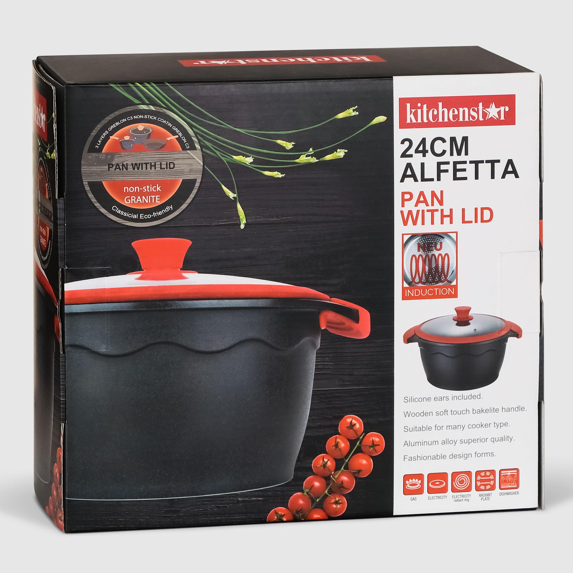 Кастрюля с крышкой бренда Kitchen star из коллекции Alfetta изготовлена в минималистичном стиле из литого алюминия с антипригарным покрытием высочайшего качества. Ярко-красные вставки разнообразят интерьер вашей кухни. Подходит для использования на газовых, электрических, индукционных, керамических плитах. Сьемные эргономичные бакелитовые ручки с минималистичным дизайном в ярком цвете не нагреваются и удобно лежат в руке. Каменное покрытие внутри и лаковое снаружи, устойчиво к царапинам и обладает исключительной долговечностью. Обладает антипригарными свойствами и легко чистится.