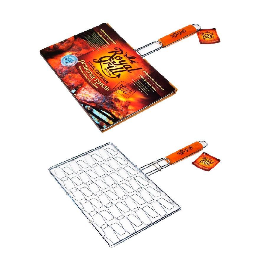 Эластичная решетка-гриль для блюд нестандартных размеров ROYALGRILL 34х22см 80-029 отличается конструкцией, которая принимает форму содержимого, что позволяет готовить большие порции пищи. Для защиты от ожогов в данной модели предусмотрена деревянная ручка.
