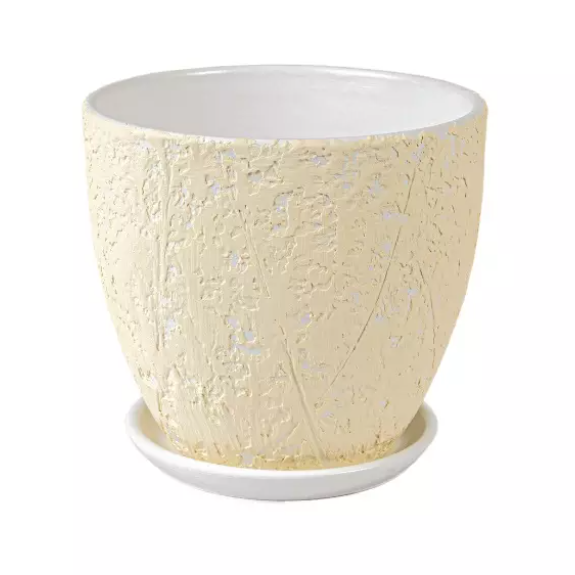 Горшок керамический с поддоном - это идеальное решение для выращивания комнатных растений и создания красивого интерьера. Керамические изделия используются человечеством для выращивания растений уже не одно столетие и прекрасно себя зарекомендовали. Горшок подойдёт для разнообразных комнатных растений.