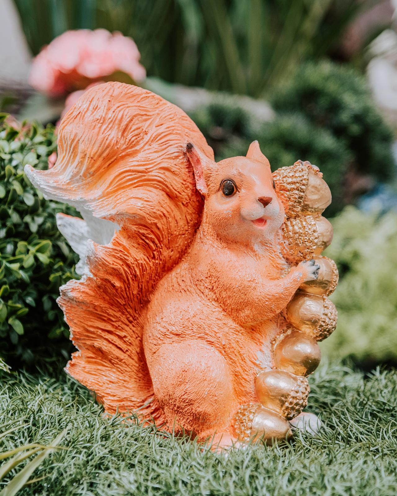 Садовая фигура «Белка с орешками» подойдет для украшения Вашего садового участка. Дачные фигурки из полистоуна имеют высокую устойчивость к негативным внешним факторам в виде плохой погоды, сырости, жары, ультрафиолетовым излучениям. Фигура декоративная долговечна и будет радовать своих владельцев долгие годы. Фигура для сада проста в уходе, для очистки достаточно протереть его влажной тканью, по необходимости с использованием любых моющих средств. Сувенир сделает дворик особенно красивым и уютным.