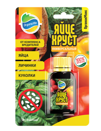 Яйцехруст - это органическое средство защиты растений от насекомых вредителей на стадии яиц, личинок и куколок. - Широкий спектр активного действия более чем на 200 видов вредителей: сосущие и грызущие насекомые вредители, колорадские жуки и другие - Блокирует развитие яиц, личинок и куколок насекомых вредителей. - Обладает системным действием: попадая в тело насекомого нарушает его гормональную систему. - Не вызывает привыкания у насекомых - Действующие вещества полностью биоразлагаемы и не причиняют ущерб человеку и окружающей среде Препарат направлен на борьбу с насекомыми-вредителями на стадии яиц, личинок и куколок. Он воздействует на эндокринную систему насекомого, а не на пищеварительную или нервную систему, и поэтому не приводит к развитию резистентности у будущих поколений.
