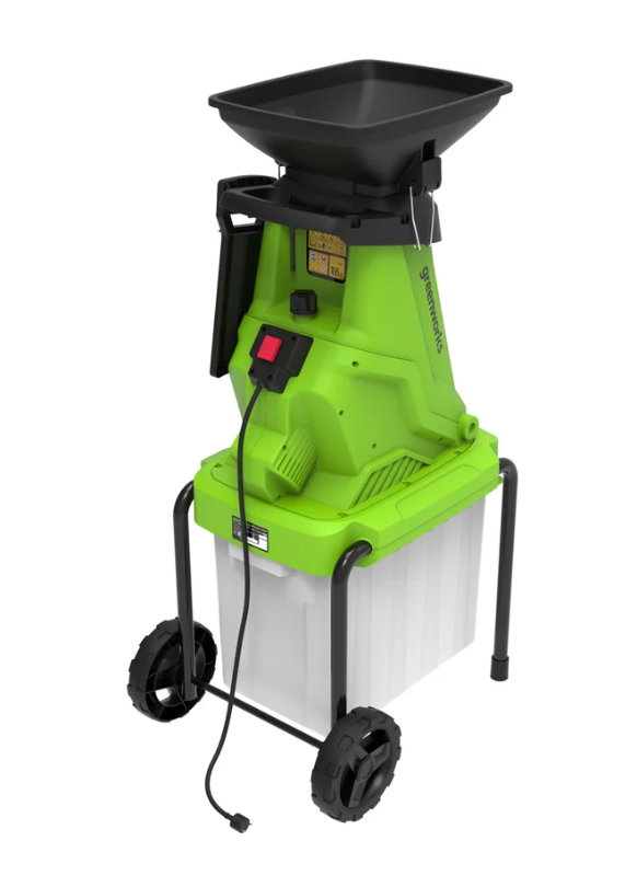 Измельчитель садовый электрический Greenworks предназначен для утилизации растительных отходов: веток, стеблей (кроме травы).