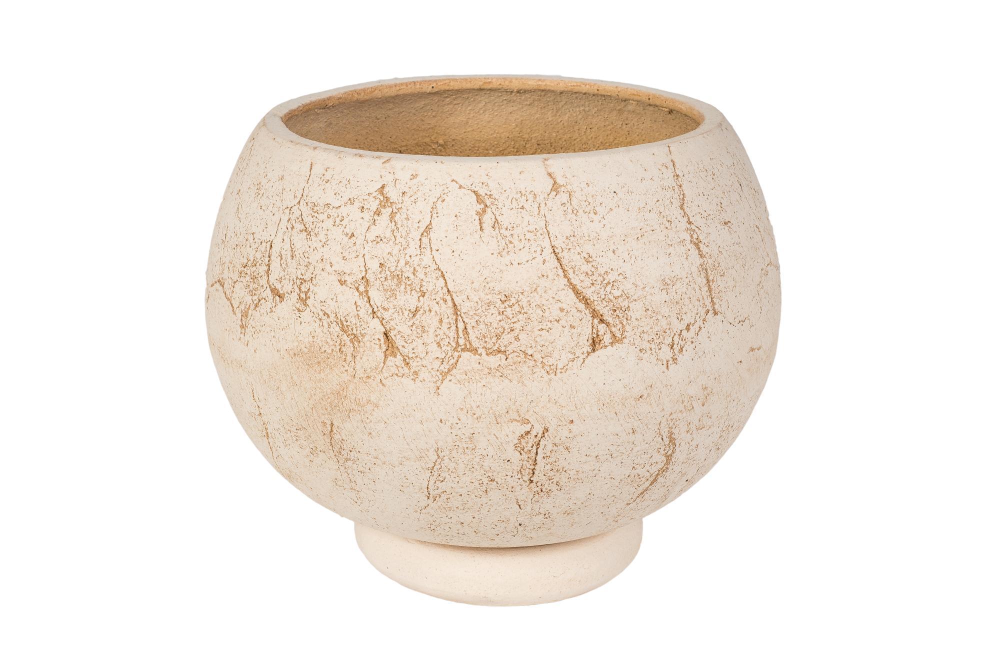 Цветочный горшок изготовлен из шамотной глины высокотемпературного обжига. Изнутри покрыт специальной кварцевой глазурью. Выполнен в бежевом цвете. Декорирован узорами из линий, имитирующими лёгкие трещинки под старину. Горшок по форме напоминает усеченный шар. Преимущества: Экологически чистый материал, не содержит вредных примесей Горшки обладают высоким сроком службы, более 10 лет Подходит для посадки любых растений Не протекает, не гниет и не болеет грибком Благоприятен для роста и развития растений Подходит для использования в помещениях и на улице Эстетически вписывается в любой интерьер, дополняя растение Описание Горшок керамический Шар выполнен в интересной форме усечённого шара в спокойном бежевом цвете. Изготавливается серией из 5 горшков разного размера, имеет дренажное отверстие и небольшой поддон. Данный горшок отлично подойдёт для использования в уличном оформлении ландшафтного дизайна загородного дома. Установленный на открытой