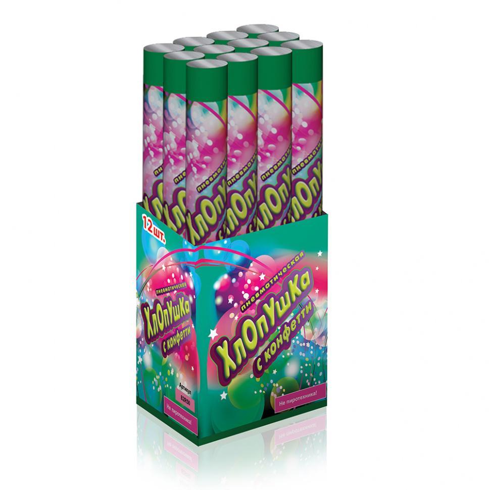 Хлопушка - 50см. Наполнение: Фольгированное конфетти. Высота выстрела 5-8 метров.Пневмохлопушка не пиротехническое изделие, поэтому абсолютно безопасно и может применяться в любых помещениях и на улице! Пневмохлопушка срабатывает за счет сжатого воздуха. Приводится в действие простым поворотом нижней части по часовой стрелке, удерживая при этом верхнюю часть хлопушки второй рукой. Пневмохлопушка представляет собой пластиковый или бумажный корпус, в виде цилиндра, состоящий из двух частей, пневматического баллона со сжатым воздухом и цилиндра с наполнителем. Пневмохлопушки прекрасно украсят праздник выстрелами из конфетти, как на улице, так и в помещениях. Выстрелы из хлопушки с конфетти крайне эффектно смотрятся на видео и фото съемке.Ключевые слова: пневмохлопушка, хлопушка с конфетти, пневмохлопушка с конфетти, хлопушка с конфетти сердечки, красные сердечки конфетти хлопушка, хлопушка с конфетти сердечками, хлопушка с серпантином, хлопушка с конфетти из фольги