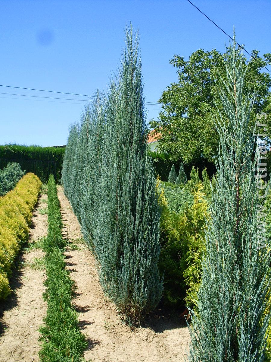 Можжевельник скальный "Blue Arrow" – один из самых популярных можжевельников с голубой кроной. Он прекрасно акклиматизировался в средней полосе России от западных границ до Урала. Кустарник выглядит как направленная в небо стрела. Хвойник может вырасти до 5 м в высоту и в ширину около 1 м. Крона растения имеет идеальную узко-конусовидную форму с очень острой верхушкой. Растет сравнительно быстро, около 15 см в год, предпочитает открытые солнечные места, но может расти в полутени. Сорт отличается высокой морозостойкостью, до - 30°С. Земля для посадки подойдет только легкая, слегка кислая и обязательно с хорошим дренажом, без застоя воды. После посадки саженца, независимо от возраста, следует замульчировать приствольный круг минимум на 30 см от стволика, чтобы не допускать излишнего перегрева и быстрой потери влаги. Можжевеловый кустарник показывает хорошие жизнеспособные характеристики: морозостоек, засухоустойчив, имеет отличный иммунитет к различным хвойным заболеваниям, устойчив к вредителям.