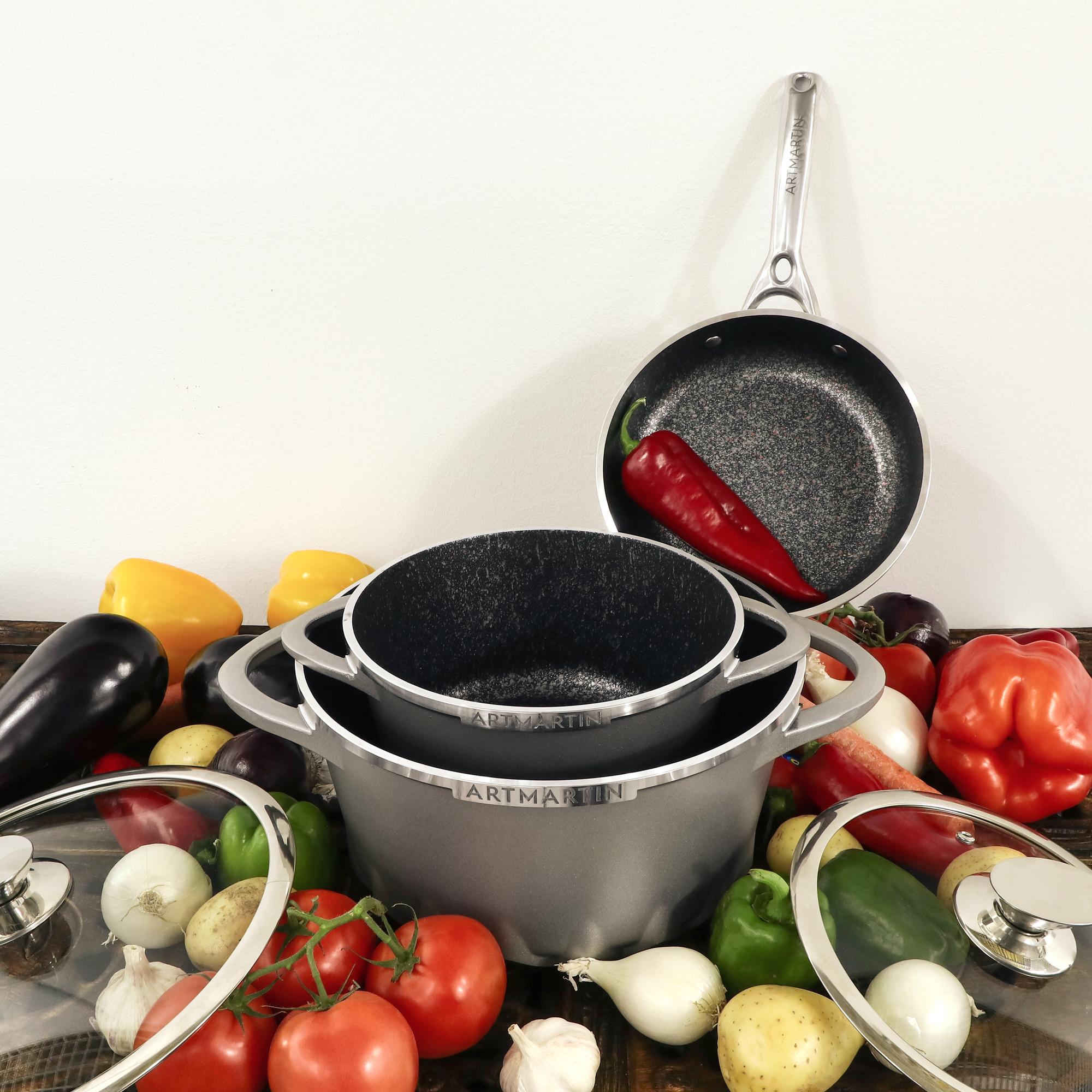 Посуда бренда Kitchenstar из коллекции Artmartin имеет оригинальную форму и изготовлена из литого алюминия с антипригарным каменным покрытием высочайшего качества.
