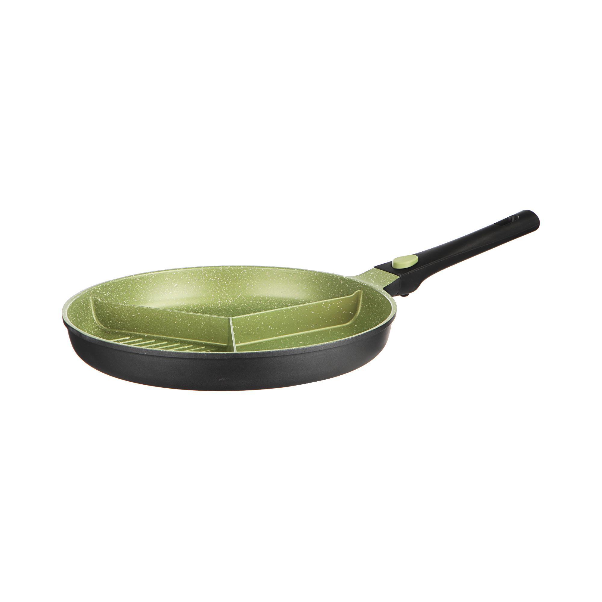 Со сковородой Millman от Kitchenstar Вы будете тратить гораздо меньше времени на готовку, чем раньше. Три равных отсека позволят Вам одновременно приготовить сразу несколько разных продуктов. Такая сковорода отлично подойдет, например, для традиционного английского завтрака. В одном отсеке – яичница, в другом – бекон, а в третьем – фасоль. Сковорода изготовлена из экологичных материалов без вредных веществ. На антипригарном покрытии, устойчивом к царапинам, можно жарить без сливочного и растительного масла. Сковорода Millman сэкономит Ваше время и сделает трапезу вкусной и полезной.