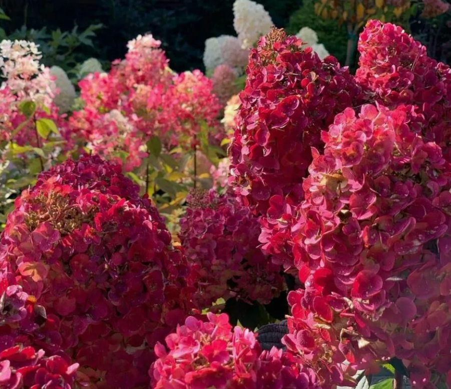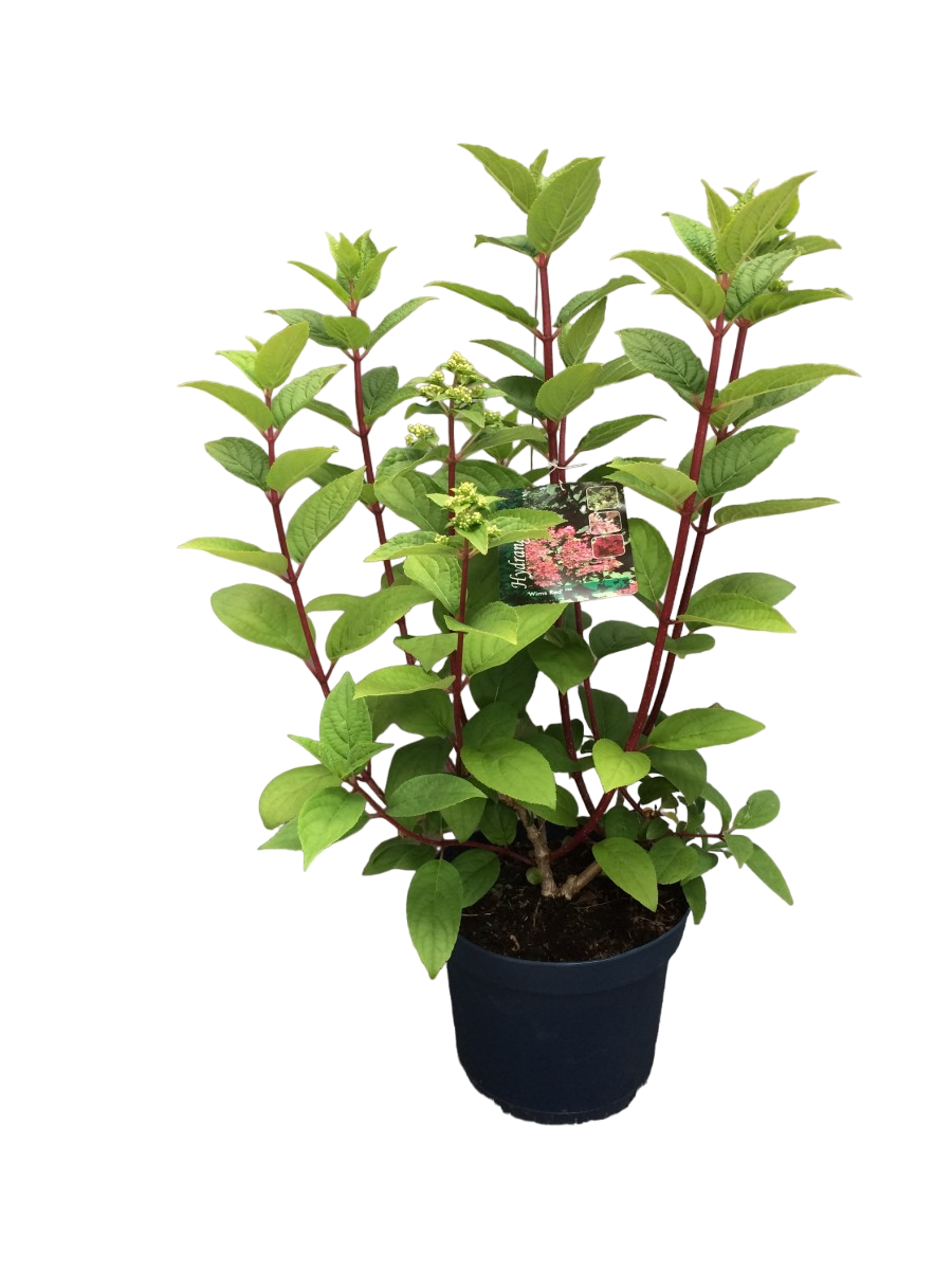 Гортензия метельчатая «Вимс Ред» была получена немецким селекционером несколько лет назад и буквально сразу же получила признание во всем мире. Этот лиственный кустарник очень долго и обильно цветет. Соцветия пирамидальной формы крупные, высотой до 35 см. По мере цветения изменяется окраска бутонов «Вимс Ред»: на начальной стадии роспуска метельчатые бутоны имеют белую окраску, затем она становится розовой и в результате бутоны приобретают насыщенно-бордовый цвет.