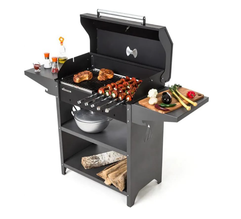 Мангал выдерживает дровяную растопку. Толстая сталь и выверенная конструкция предотвращают температурные деформации топки.