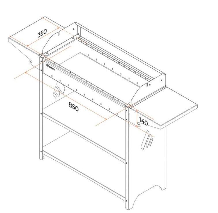 Топка длиной 85 см вмещает 15 шампуров, что позволяет одновременно приготовить 3.5 кг мяса.