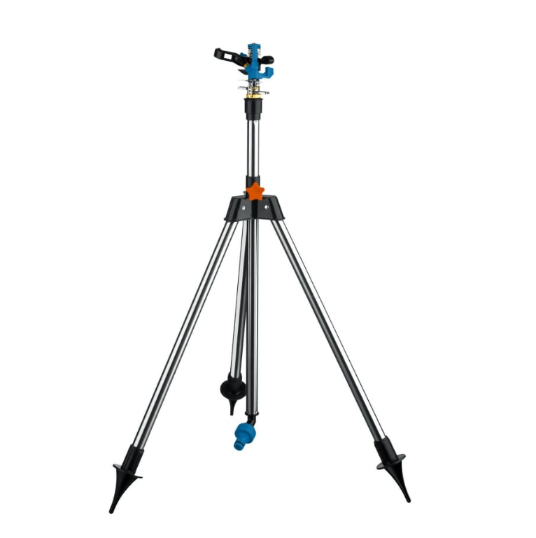 Тренога из хромированной стали обеспечивает надежное крепление устройства на поверхности почвы и сохранение установленного сектора полива неизменным.