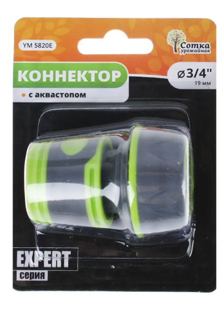 Линейка комплектующих для полива растений "Урожайная сотка Эксперт" - это высоко качественная продукция со стильным дизайном и прорезиненными и металлическими элементами - для надежности и более приятного использования товаров для полива. Будет незаменима на любом дачном участке. Тип крепления - под коннектор. Применение: для быстрого и удобного соединения систем полива. Предназначен для подключения насадок, пистолетов к шлангам 3/4. Подача воды автоматически перекрывается при съеме насадки.