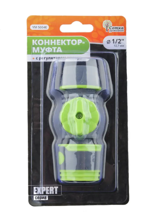 Линейка комплектующих для полива растений "Урожайная сотка Эксперт" - это высоко качественная продукция со стильным дизайном и прорезиненными и металлическими элементами - для надежности и более приятного использования товаров для полива. Тип крепления - под коннектор. Применение: С одной стороны идет соединение под коннектор, с другой - муфта 1/2. Для соединения шлангов между собой или шланга с трубой. Имеется регулятор для контроля напора воды.