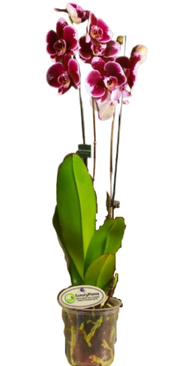 Орхидея Фаленопсис (лат. Phalaenopsis) - это удивительное растение семейства Орхидные. Родиной цветка считается Юго-Восточная Азия, Индонезия и Австралия. Фаленопсис встречается во влажных тропических лесах, где располагается на других растениях или камнях. Из-за этой особенности орхидеи включают в ряды эпифитов и литофитов. Внешне фаленопсис легко узнать по густой прикорневой розетке, она составлена из кожистых зеленых листьев. Цветение орхидеи происходит несколько раз в год, длится до трех месяцев. Этот процесс сопровождается появлением нежных соцветий, по форме они напоминают крылья бабочек. По окрасу орхидеи фаленопсис могут быть самыми разными: яркими, пастельными или темными. Цветы на фото отличаются темно-бордовой расцветкой.
