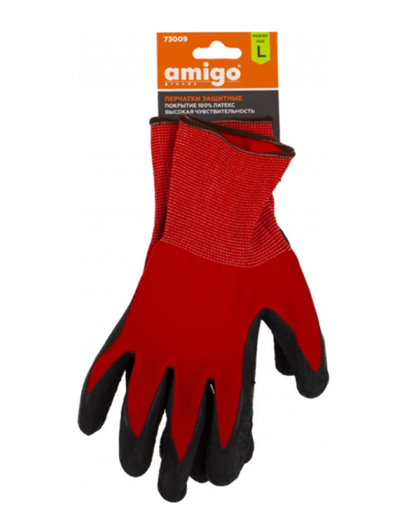 Защитные перчатки AMIGO покрытие латекс, высокая чувствительность, размер L 73009 имеют 15 класс вязки, поэтому они износостойки к истиранию.