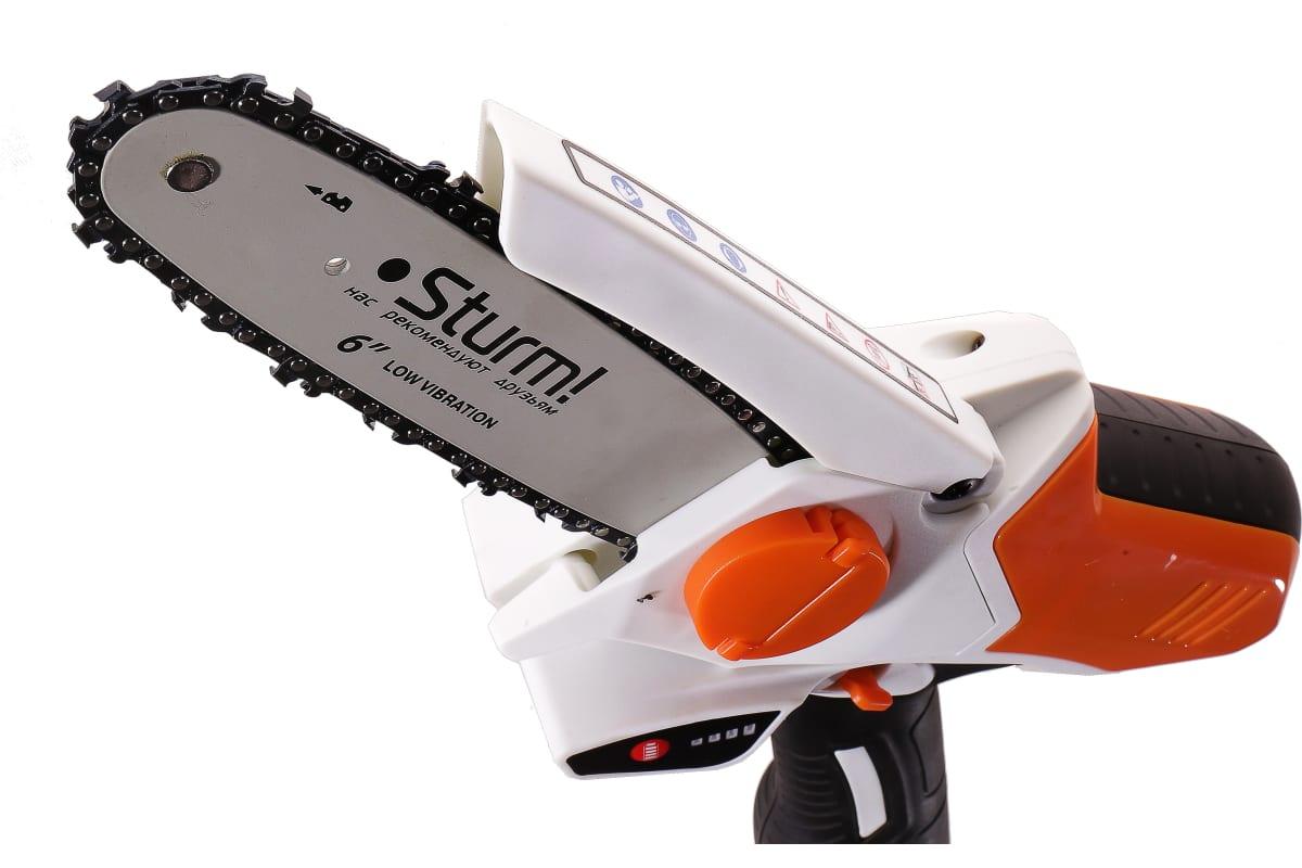 Аккумуляторная цепная пила Sturm CSC1804 прекрасно справится с обрезкой веток деревьев и простыми столярными работами.