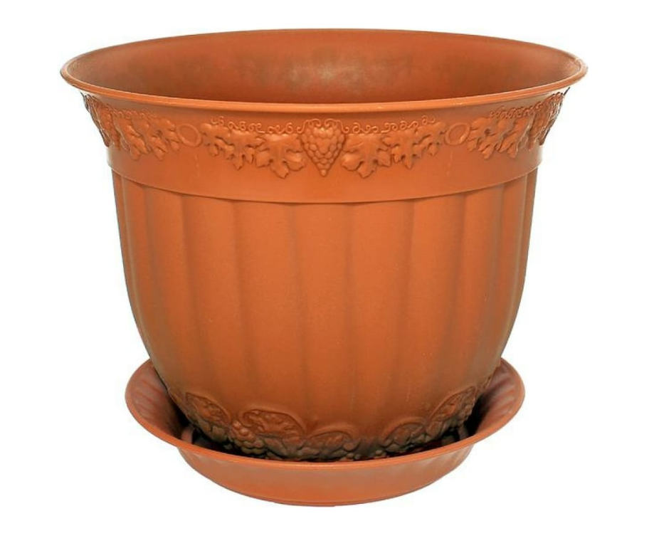 Кашпо с поддоном Эльфпласт Флора 17 см, 1.6 л, терракотовое предназначено для выращивания растений.
