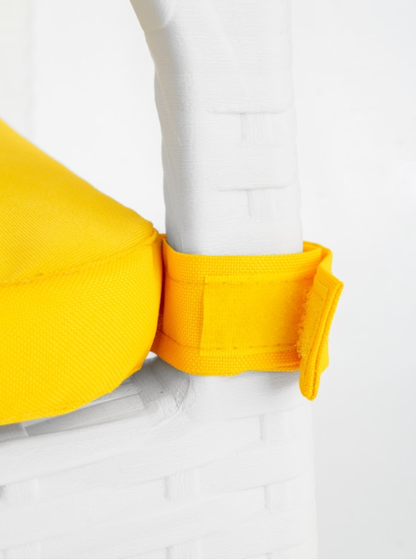 Подушка имеет липучки для фиксации к креслу и тканевую бирку.