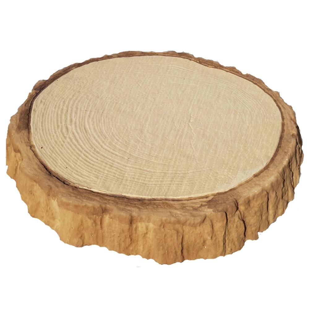 Тротуарная плитка в мельчайших деталях имитирует спилы деревянного бревна.