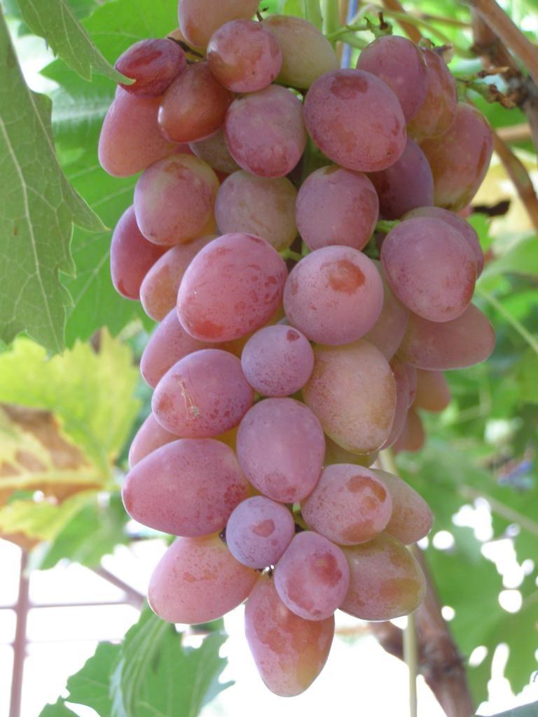 Виноград Восторг красный получили, скрестив стандартный Восторг и сорт Оригинал. Узнать этот гибрид можно по очень крупным вытянутым ягодам насыщенного розового цвета. На вкус виноградины кисло-сладкие, очень сочные, с плотной кожурой и минимальным количеством косточек. Именно у винограда Восторг Красный наблюдается самая высокая стойкость к морозу и повышенная устойчивость к самой опасной, серой гнили. Чтобы ягоды этого сорта как можно дольше оставались на кустах, растить лозу нужно на высоких опорах. Вырастить Красный Восторг очень просто, ведь он – самый неприхотливый из всех разновидностей сорта.