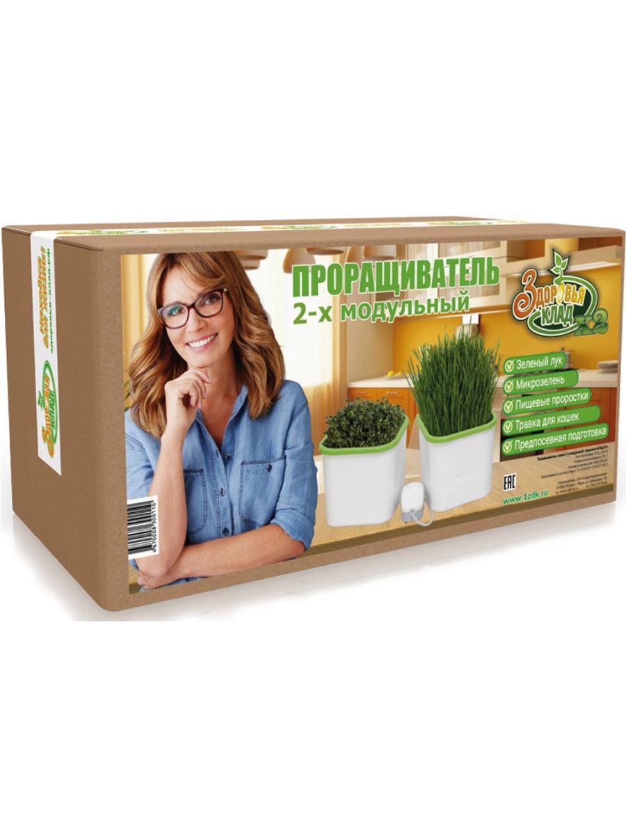 Двухмодульный проращиватель Здоровья Клад подходит для садоводов, приверженцев здорового питания. Вы сможете в два раза больше выращивать микрозелень, богатую витаминами, кресс-салат, дайкон, рукколу, получать проростки зерновых, семян, бобовых. Выращивать пшеницу для приготовления полезного напитка витграсс. Ээффективно подготавливать семена для увеличения урожая. Вырастить сочную травку для питомцев. Как это работает. Сердце устройства компрессор. Он насыщает воду кислородом. Именно благодаря аэрации семена быстрее прорастают. При этом затраты на электроэнергию минимальны. Вы можете подключить любое количество модулей, при этом будет использоваться один компрессор.
