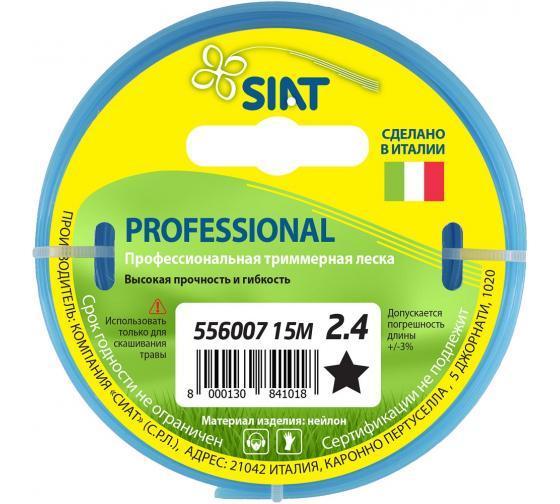 Леска SIAT 556010 применяется при работе триммерами. Является режущим элементом и заправляется в триммерную головку. Леска различается по диаметру и форме сечения. Правильный подбор толщины лески и ее сечения для определенных работ существенно влияет на скорость кошения и износ лески. Корд представляет собой мононить с сечением в виде звезды, имеет высокую износостойкость и отличную режущую способность благодаря острым краям лески. Подходит для подрезки толстых сорняков, лопухов, легко справится с зарослями жесткой травы. Выполнен из качественных материалов, имеет длительный срок эксплуатации.