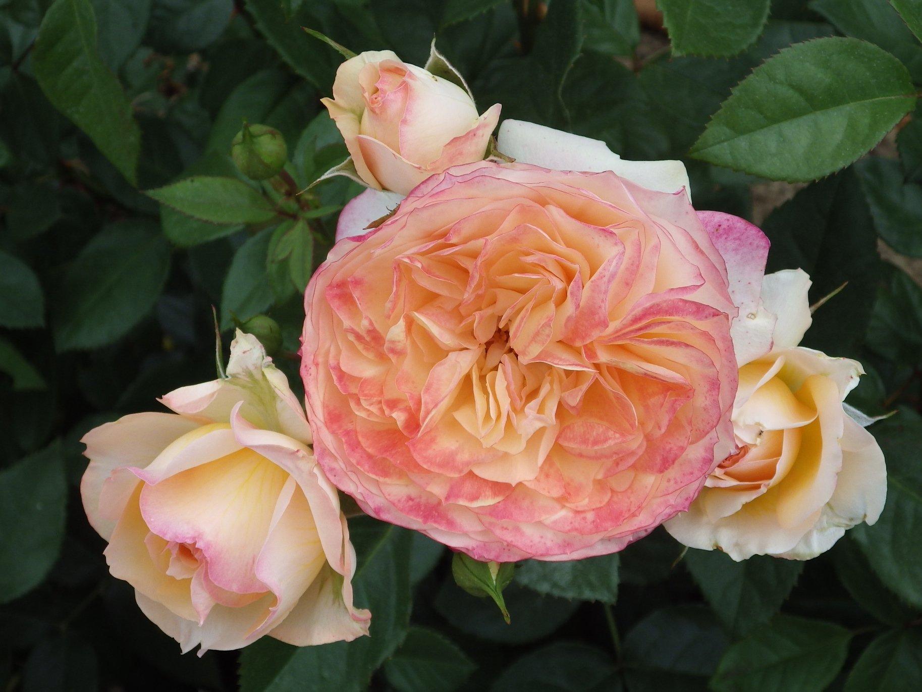 Цветки диаметром 9-12 см, махровые (более 41 лепестка), лососёво-оранжевые с розовыми оттенками. Аромат лёгкий. Цветение обильное, повторное. Листва блестящая, устойчивая к заболеваниям. Куст высотой 80-100 см. Рекомендуется для миксбордеров. Сорт устойчив к болезням. Цветки устойчивы к дождю.