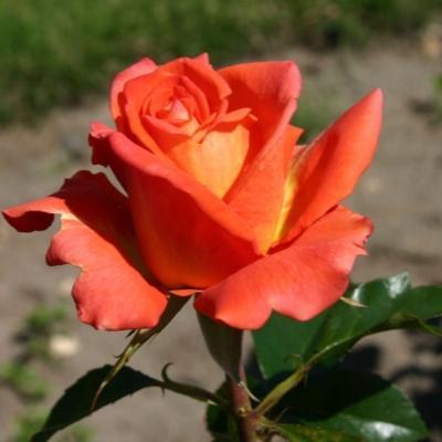Цвет сорта сложно уловить на фото. Обычно роза кажется очень ярко-оранжевой, с золотистым основанием, но цвет часто описывается как оранжево-алый с желтой изнанкой. Лепестки похожи на языки пламени. Цвет очень стойкий, по мере старения цветка не меняется. По мере роспуска становится более заметной алая внутренняя сторона, цветы выглядят чуть спокойнее.