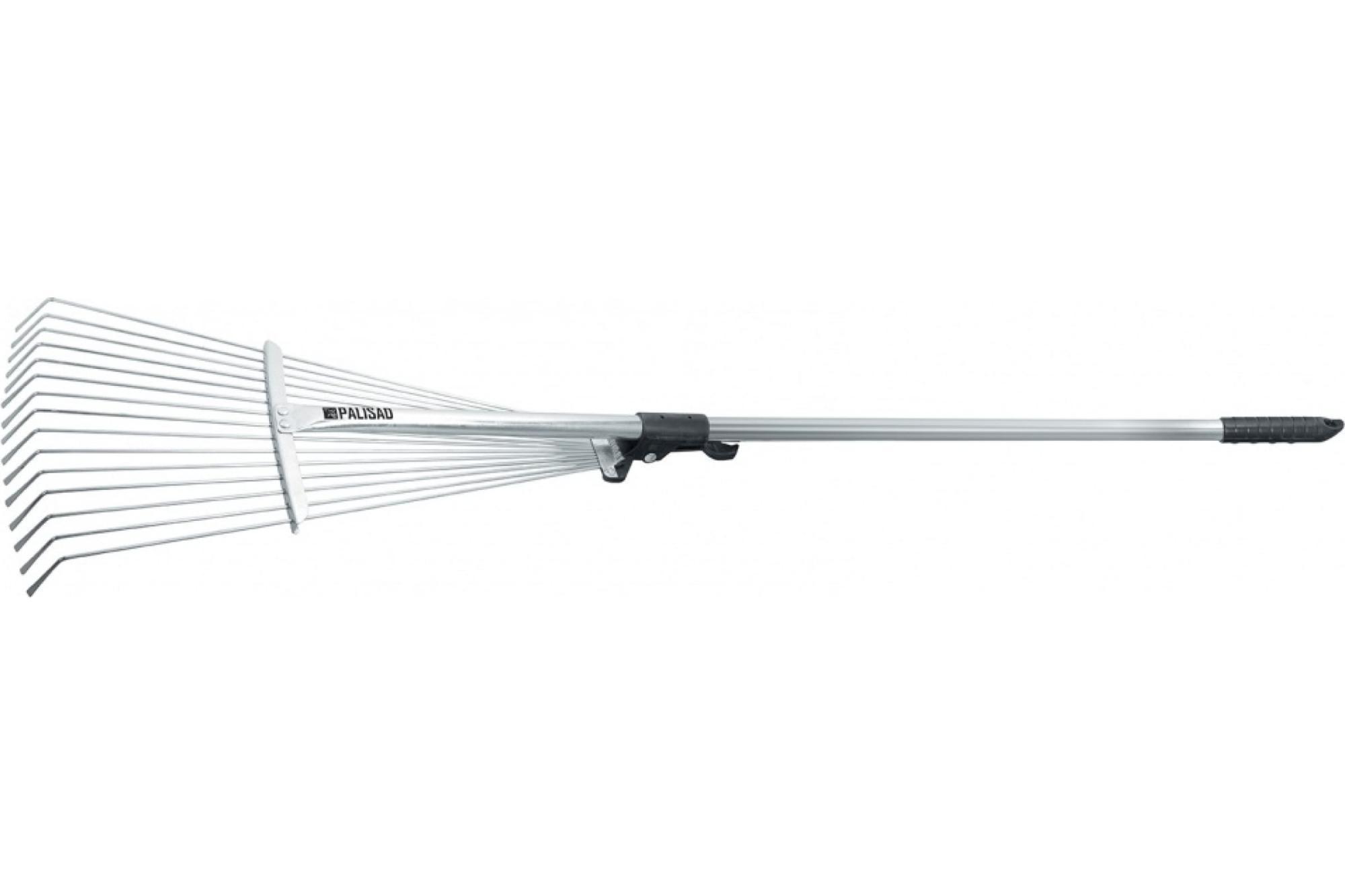 Грабли веерные стальные Palisad, 190-520 х 1200-1500 мм, раздвижные с 15 зубьями и стальным черенком пригодятся для работы на дачном участке. Они используются при уборке веток, мусора, опавших плодов с газонов и грядок. Преимущества: Инструмент изготовлен из оцинкованной среднеуглеродистой стали, поэтому устойчив к нагрузкам и коррозии. Ширину рабочей части и длину черенка можно регулировать, что повышает комфортность работы. Поперечная планка на основании увеличивает прочность рабочей части. Благодаря пластиковому подвесу на черенке грабли удобно хранить. . Грабли.