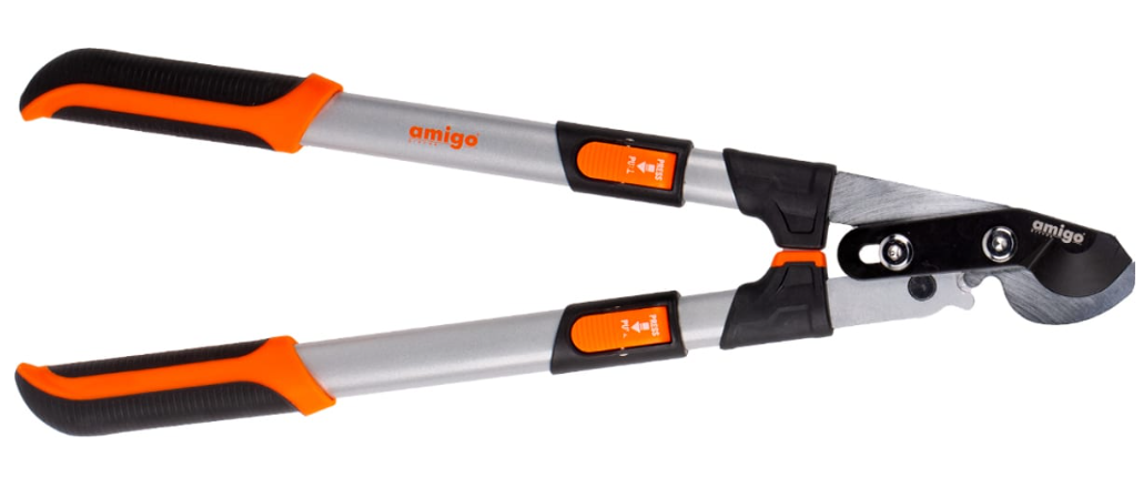 Благодаря телескопическим ручкам можно увеличить усилие, а храповой механизм дополнительно облегчит процесс обрезки веток.