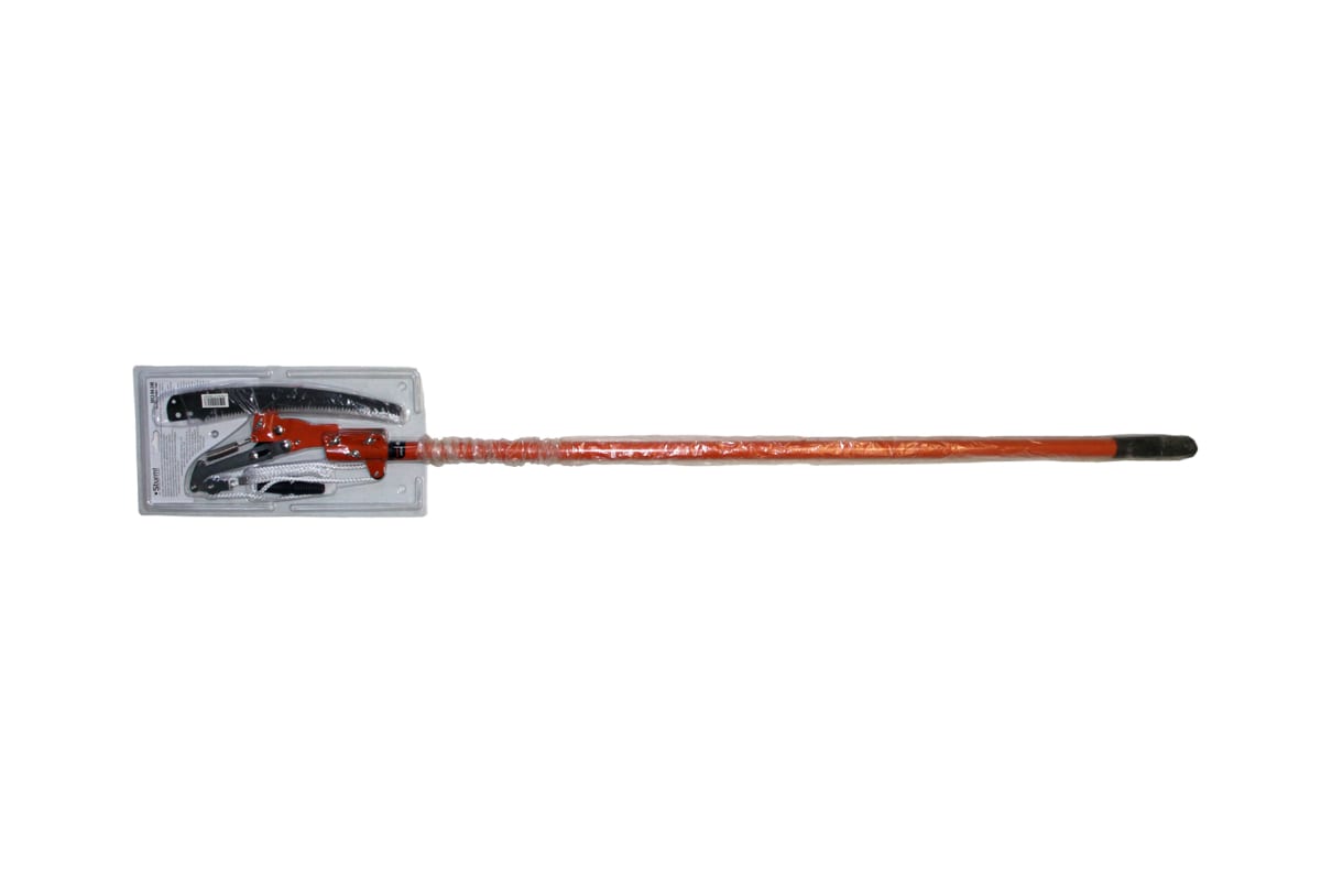 Телескопическая штанга регулируется в диапазоне от 1.35 м до 2.4 м, что позволяет обрезать сучки на высоте без использования подставок и стремянок.
