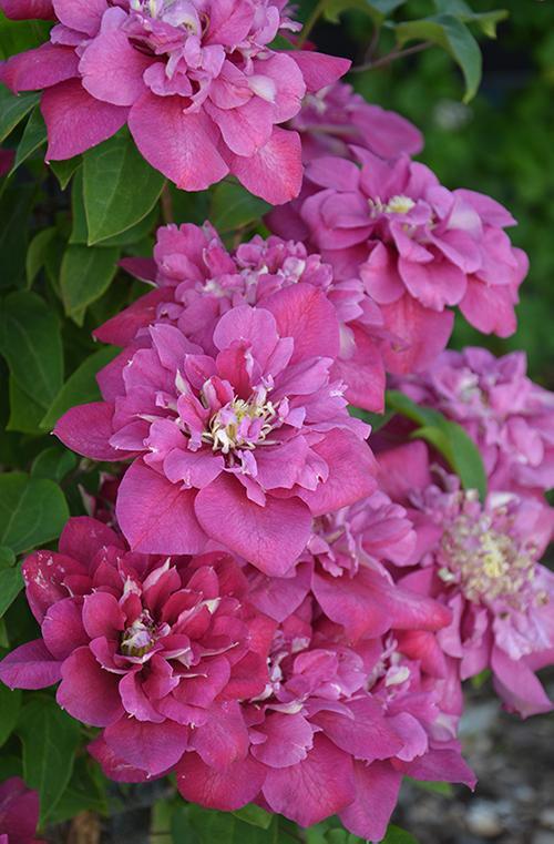 Обильноцветущий сорт с цветками среднего размера, диаметром 12-14 см. Цветки махровые, красно-пурпурные с лиловыми тенями, устойчивы к выгоранию. Цветки махровые и полумахровые на прошлогодних побегах, а одиночные, на новых приростах, появляются на расстоянии 40 см от основания растения. Основное цветение приходится на май - конец июня, одиночные цветки появляются в конце лета в августе-сентябре. Листья темно-зеленые, полуматовые, одиночные и сложные. Сорт компактный, идеален для патио. Растет умеренно, высотой 1,3-1,5 м. Хорошо растет в солнечном местоположении. Обрезка слабая (II группа).