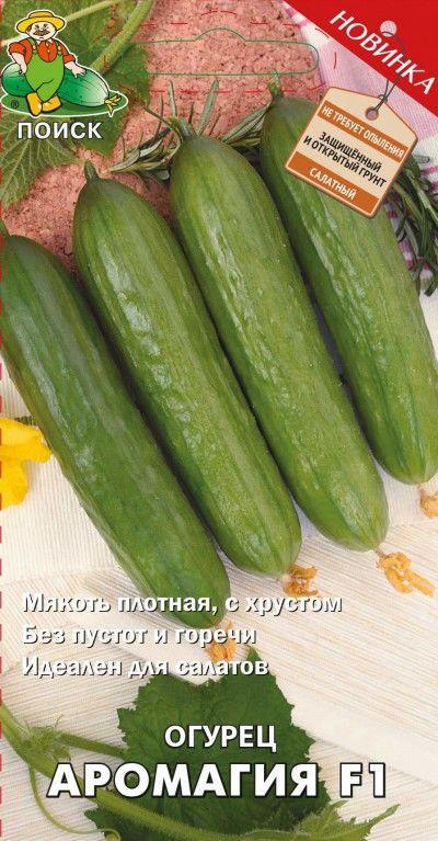 Вкусный, ароматный, идеален для салатов. Партенокарпический среднеспелый гибрид. Для выращивания в пленочных теплицах, под временными укрытиями и в открытом грунте. Период от полных всходов до начала плодоношения 45-50 дней. Растение среднерослое, ветвление среднее, в узле формируются 1-2 завязи. Плоды цилиндрические, гладкие с редкими небольшими бугорками. Длина плода 16-18 см. Вкусовые и товарные качества высокие. Рекомендуется для потребления в свежем виде. Устойчив к вирусу огуречной мозаики, оливковой пятнистости.