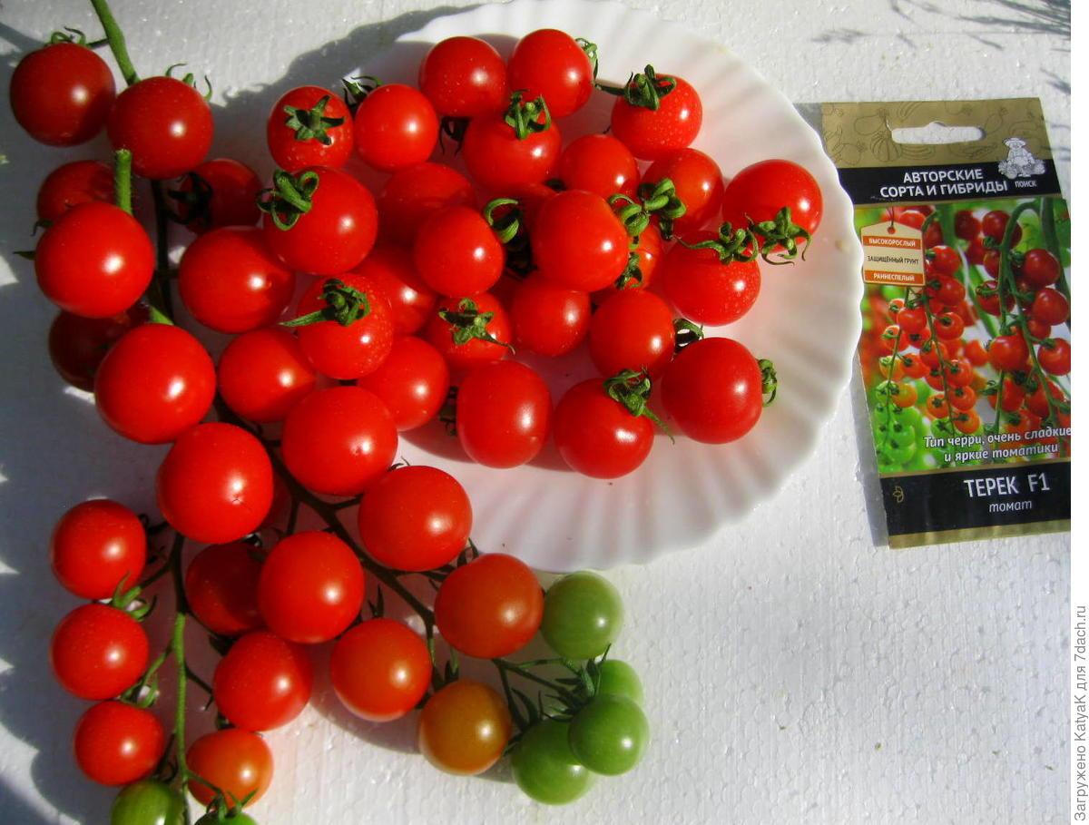 Красивые, сладкие как карамель, плоды. Для защищённого грунта. Раннеспелый, очень урожайный, гибрид.От всходов до начала плодоношения 90-95 дней. Растения высокорослое, нуждается в подвязке, формирует длинные красивые простые и сложные кисти по 15-30 плодов. Плод округлый, плотный, ярко-красный, блестящий, массой 17-19 г, сладкого десертного вкуса. Устойчив к кладоспориозу, ВТМ. Для свежего потребления и цельноплодного консервирования.