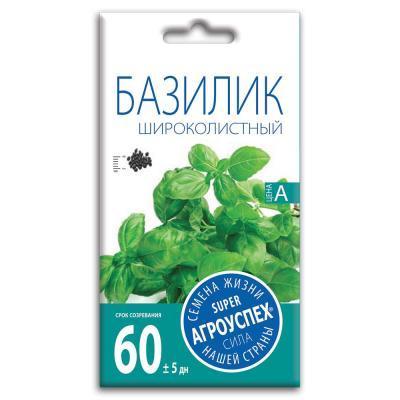 Базилик широколистный — раннеспелый высокоурожайный сорт. От полных всходов до хозяйственной годности проходит 40‒45 дней. Многолетняя культура, на одном месте выращивается 4‒5 лет. Розетка листьев прямостоячая, лист удлинённо-яйцевидный, на длинном черешке. Вкус приятный слабокислый. Средняя товарная урожайность: 3‒8 кг/м2.