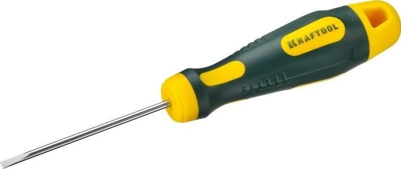 Отвертка KRAFTOOL Х-Drive SL 5x100 250071-5.5-100, стержень из Cr-Mo стали полностью закален для интенсивных нагрузок. Намагниченный шлиц с высокой силой удержания крепежа. Маслобензостойкая противоскользящая рукоятка. Система насечек NSS предотвращает выскальзывание шлица из крепежа. Технология ковки SlimFit обеспечивает сверхтонкому стержню максимальную прочность при возможности работы в труднодоступных местах. Технические характеристики отвертки KRAFTOOL 250071-5.5-100 Ударная нет Длина стержня, мм 100 Тип наконечника Slotted (SL) Общая длина, мм 198 Материал рукояти двухкомпонентная Диэлектрическое покрытие нет Намагниченный наконечник да Для точных работ нет Форма ручки Прямая Размер шлица 5 Гибкая нет Материал стержня CrMoV