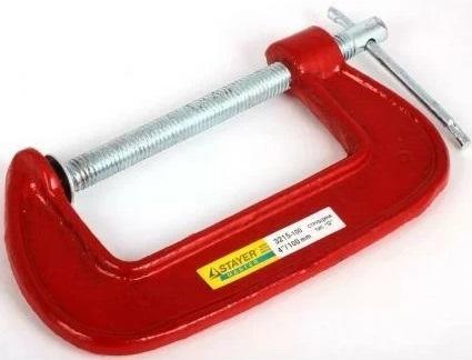 G-образная струбцина 100мм STAYER 3215-100_z01 полностью выполнена из прочной и качественной стали, отличается высокой твердостью, износостойкостью и продолжительным рабочим ресурсом. Станет прекрасным помощником для сжатия заготовок между собой при склейке или для последующей обработки.