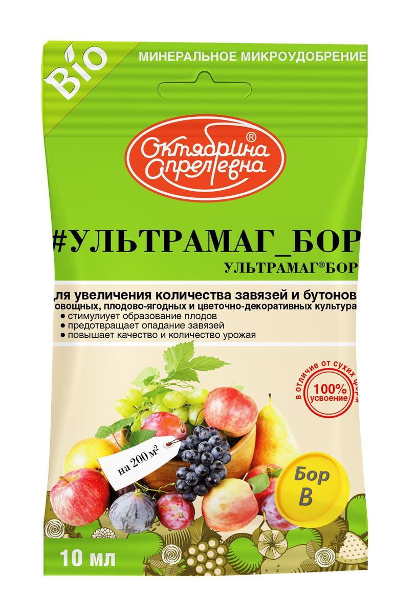 Удобрение «Ультрамаг Бор» благодаря содержанию микроэлемента бора позволяет увеличить число завязей и бутонов плодово-ягодных, декоративных растений, овощных культур. Активизирует образование плодов и способствует высокой урожайности.