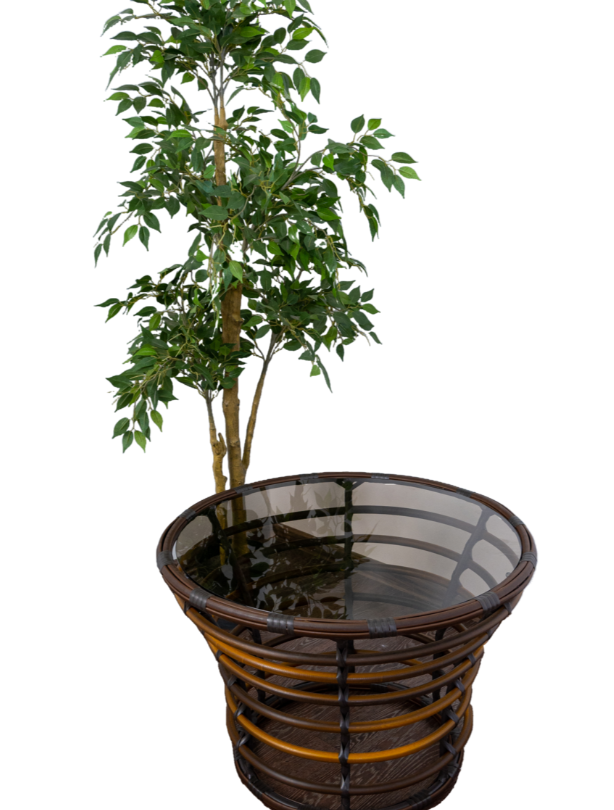 Садовый стол Сими со стеклянной столешницей с искусственным ротангом.