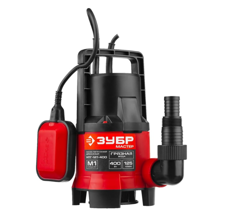 Погружной дренажный насос для грязной воды ЗУБР М1 НПГ-М1-400 подходит для очистки колодцев и осушения затопленных помещений.