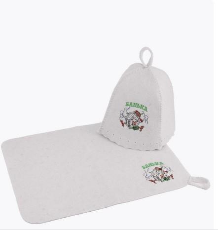 Набор 2-х предметный Эко, "Банька" (шапка с вышивкой, коврик). Размер индивидуальной упаковки: 0,37х0,24х0,02 м. Индивидуальная упаковка: пакет. Состав: шерсть 70%, полиэстер 30%. Срок хранения: не ограничен.