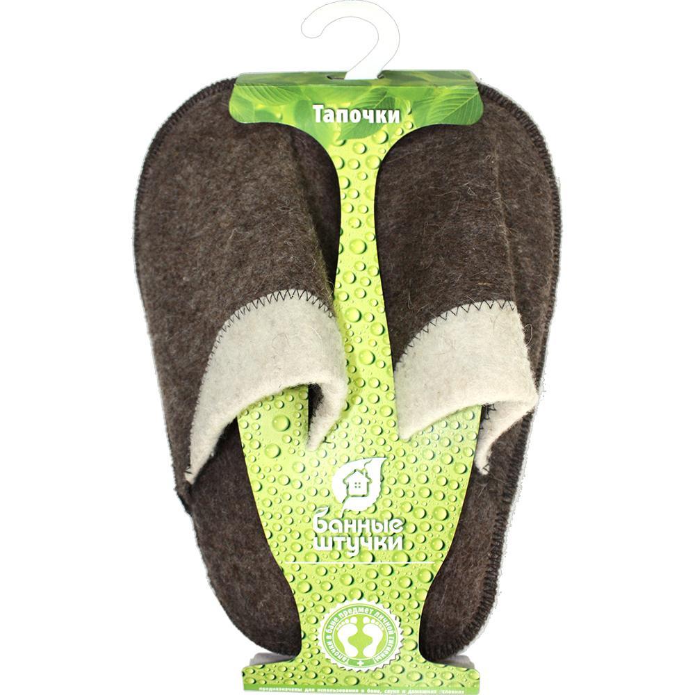 Мужские тапочки Банные штучки Комби, войлок 100% 3487 защищают ступни от ожогов и грибковых инфекций. Выполнены из натурального войлока, который обладает антибактериальными свойствами.