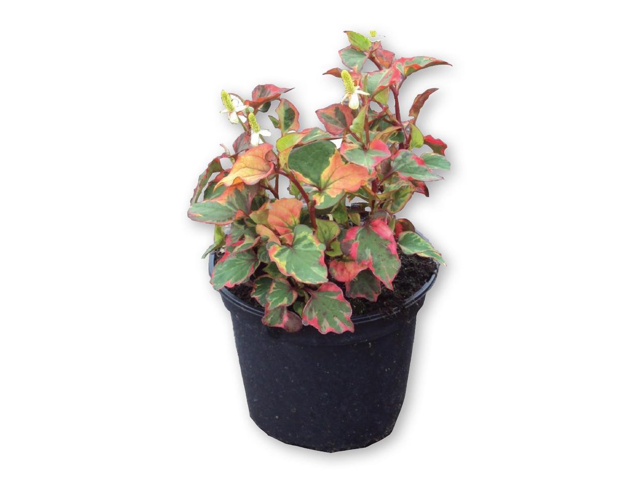 Хауттюйния сердцевидная (Houttuynia cordata) из семейства Савруровые (Saururaceae) — уроженка Китая, Японии. Она прекрасно чувствует себя в условиях повышенной влажности грунта и воздуха. В природе растет на болотах, вдоль рек и озер, в канавах, предпочитает тенистые места и мелководье; поднимается в горы, где встречается на чайных плантациях в качестве сорняка. Зимостойкость (согласно данным USDA) соответствует зонам 4-10.