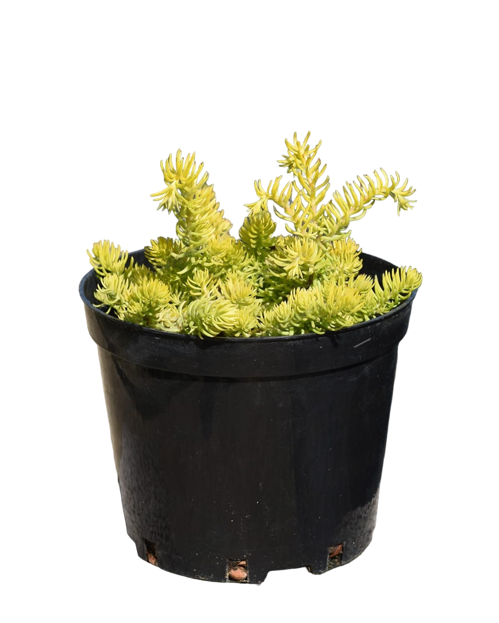 Очиток Ангелина (Angelina) – сорт отогнутого или скального вида, который можно использовать как бордюрное растение, культуру альпийской горки или каменистых садов. Это суккулентное травянистое растение низкорослого типа, высотой достигающее всего 10-15 см. Ширина очитка тоже 15 см. Стебли у растения стелющиеся. Летом они салатово-жёлтые, осенью и зимой – оранжево-жёлтые, в жару стебли также оранжевеют на кончиках. Это почвопокровный сорт с жёлтыми листьями. Соцветие зонтичное, жёлтое. Цветёт растение с июля по август.
