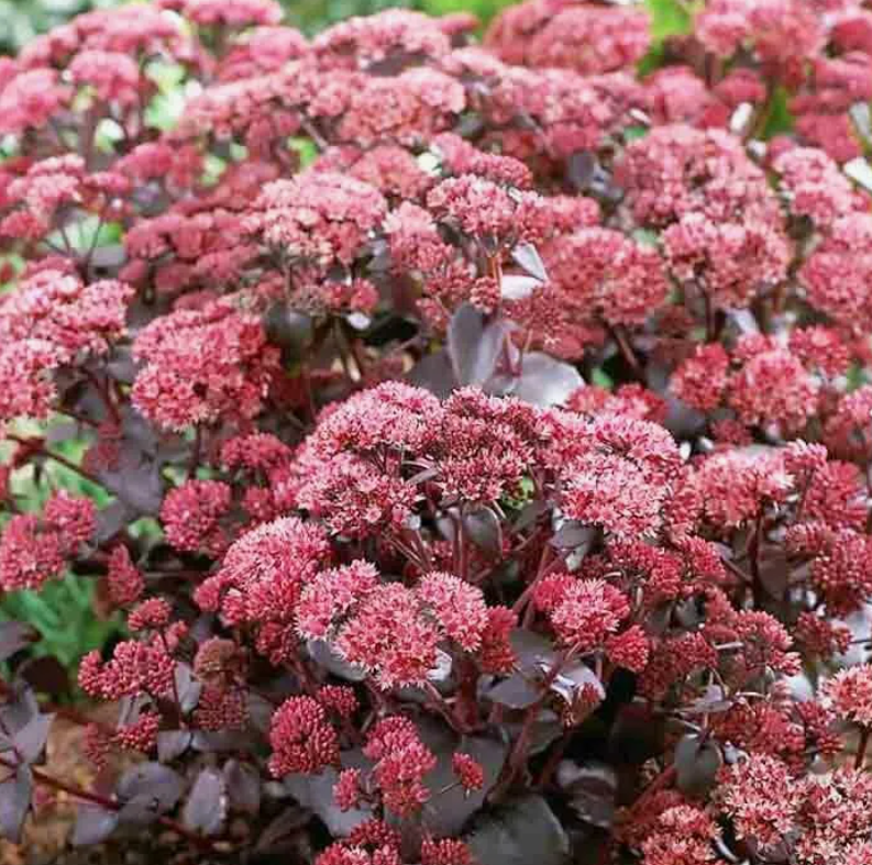 Очиток (седум) Пёрпл Эмперор - это травянистое суккулентное низкорослое растение семейства Толстянковые.Высота до 45 см. Необычайно эффектное растение, в течение всего лета украшающие сад плотными и красивыми пурпурно-фиолетовыми листьями, густо покрывающими их стебли. Листья темные, пурпурно-фиолетовые. Цветки розовые. В июле-августе на конце стеблей образуется масса мелких зеленых цветков, которые собраны в широкие зонтиковидные соцветия. А в августе или сентябре - когда шапки цветков постепенно окрашиваются в терракотово-розовые или кремово-красные цвета.