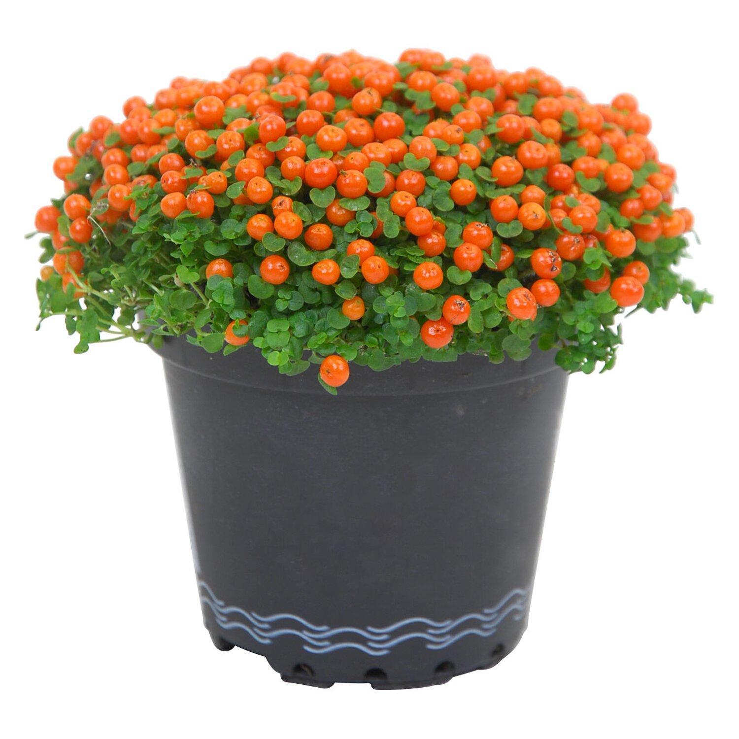 Нертера микс — небольшие многолетние, прохладолюбивые растения блестящими, с ярко-зелеными листьями диаметром до 5 мм. Цветут белыми невзрачными цветами, из которых со временем появляются круглые мясистые ягоды размером до 1 см. Плоды, покрывающие растение шапочкой, могут быть красными, оранжевыми или желтыми.