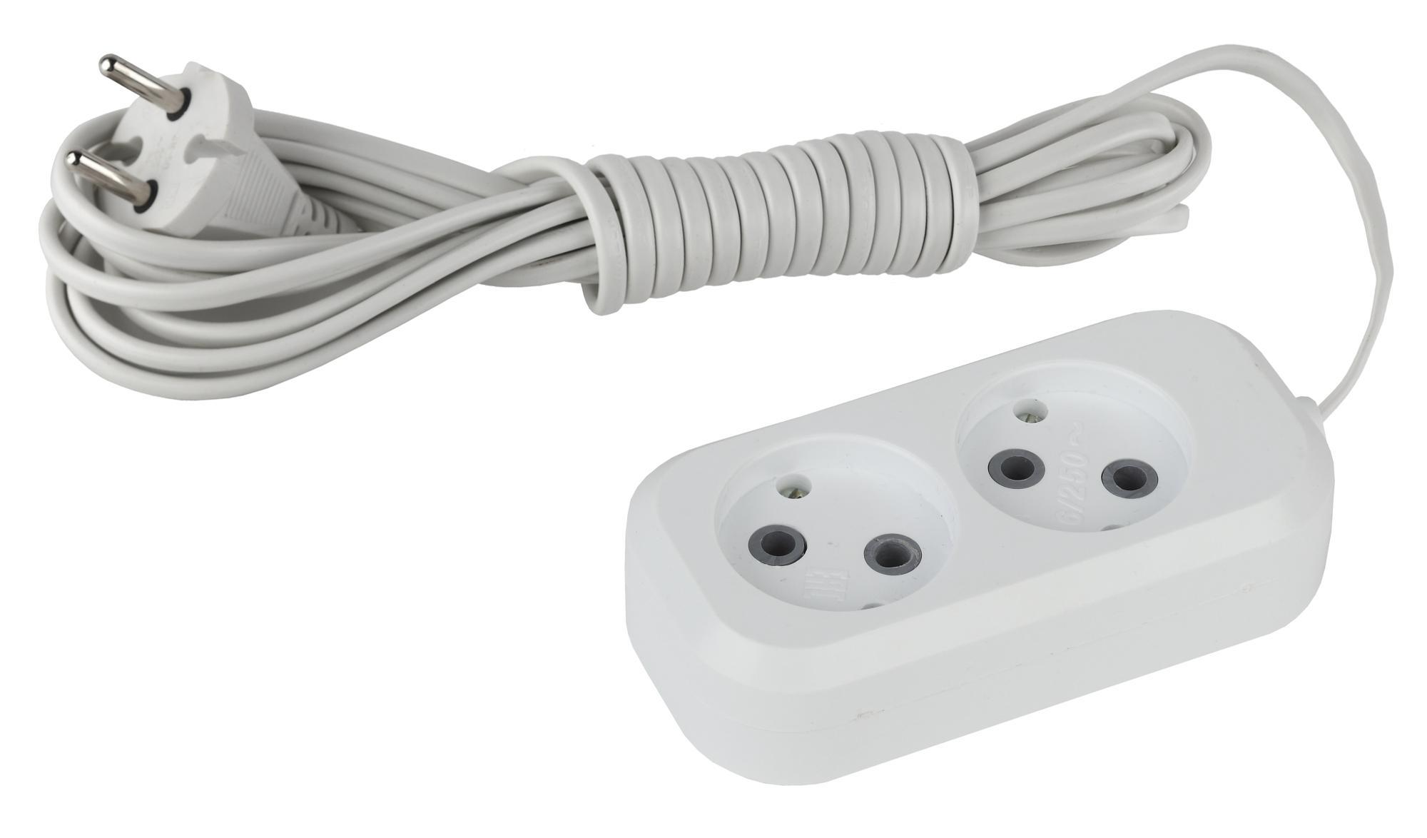 Компактный бытовой удлинитель ЭРА UX-2-1,5m на 2 розетки, без заземления. Рассчитан на одновременное подключение к розетке до двух маломощных электроприборов, максимальная нагрузка - 6 A/ 1300 Вт. Длина шнура - 1,5 метра. Надёжный двухжильный провод ШВВП. Корпус изготовлен из прочного негорючего полипропилена с защищающими от возгорания антипиренами. Закруглённые углы, брендирование на вилке и корпусе, базовый белый цвет этот удлинитель отличается аккуратным приятным дизайном.