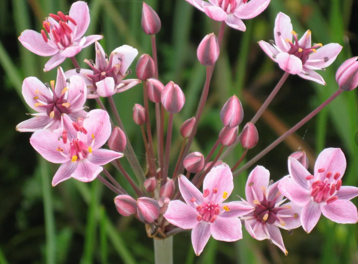 Цветоносы сусака зонтичного без листьев, соцветие - зонтик розовых цветов, до 2,5 см в диаметре.